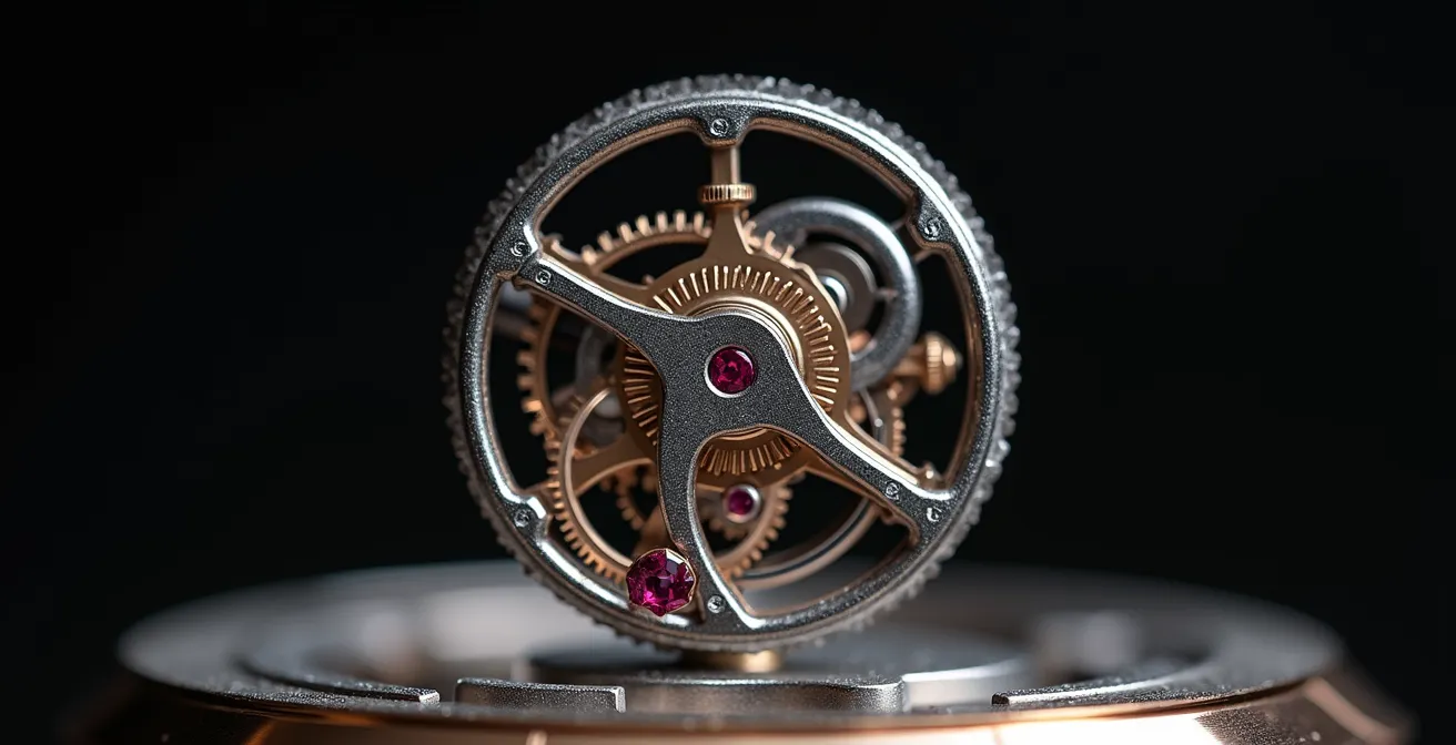 La cage d’un tourbillon premium, souvent en titane pour sa légèreté, peut peser moins d’un gramme tout en étant composée de 70 à 80 pièces. Chacune de ces pièces subit des opérations de terminaison manuelles : l’anglage, le polissage, le perlage. Ces finitions, invisibles à l’œil non averti, n’ont aucune fonction mécanique mais requièrent des centaines d’heures de travail d’un maître horloger. Elles sont la signature du savoir-faire et la justification principale du coût. À l’inverse, un tourbillon d’entrée de gamme est produit industriellement, avec des finitions minimales et des matériaux standards. L’objectif est la fonction, non l’art.